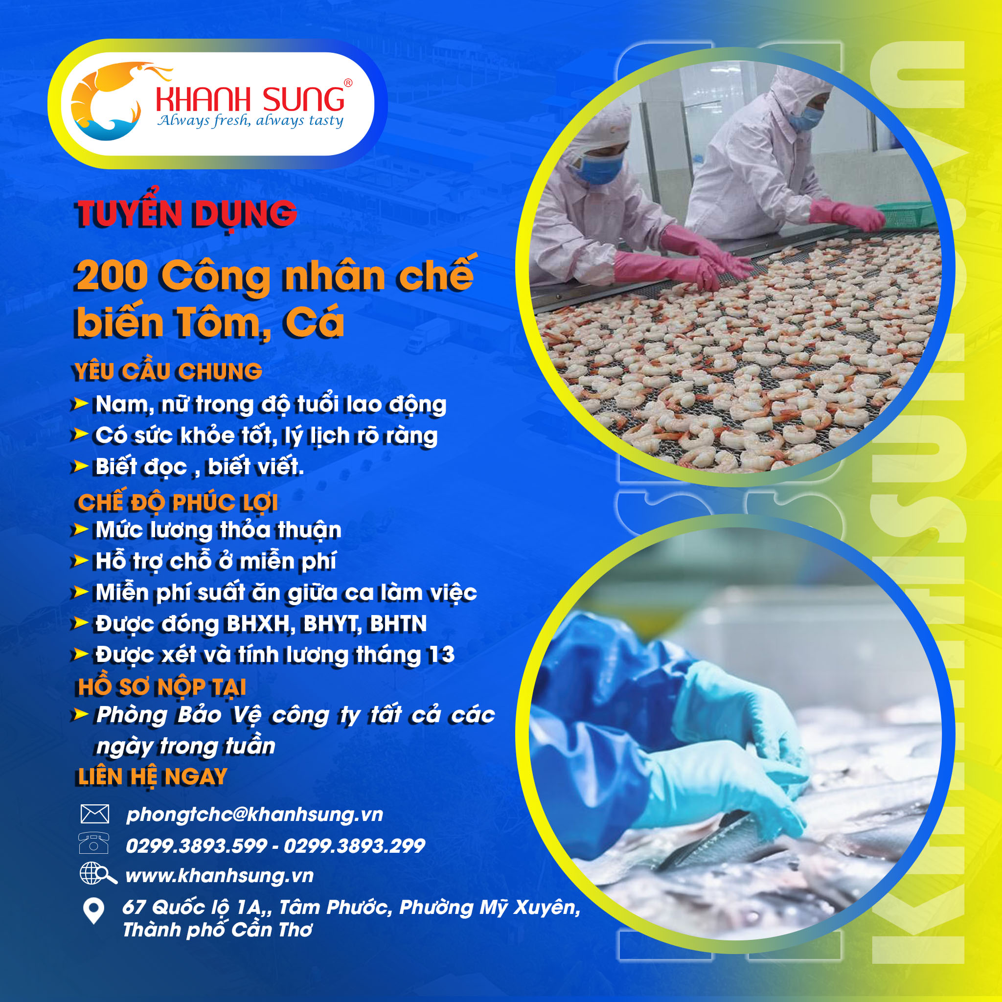 📍 Địa chỉ nhận hồ sơ: Phòng Bảo vệ công ty tất cả các ngày trong tuần tại: 67 Quốc lộ 1A, Tâm Phước, Phường Mỹ Xuyên, Thành phố Cần Thơ.